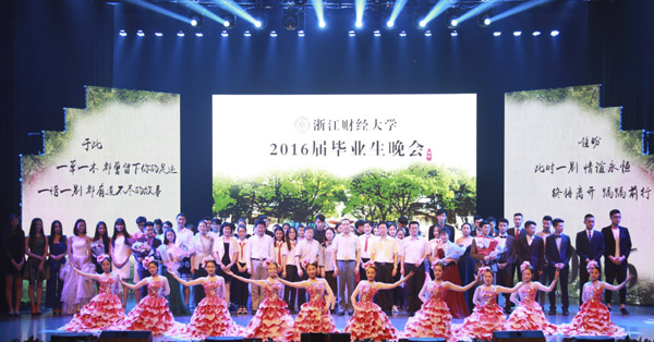 晚会在校合唱团和西洋乐队的《这一年,这一夜》中拉开序幕。晚会分为“忆•往昔、感•恩泽、祝•锦绣”三个篇章。毕业生、校友和教师代表们用倾情的演唱,动人的舞蹈、感人的音诗画为2016届毕业生送上一台精彩纷呈的晚会。