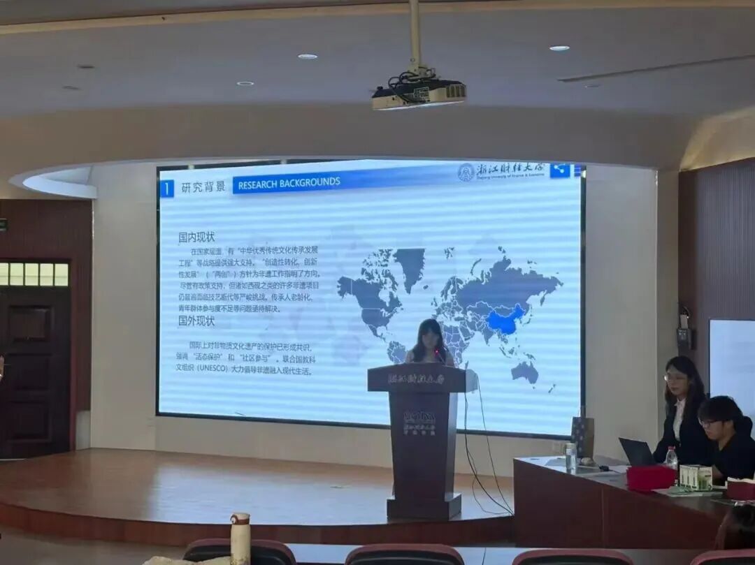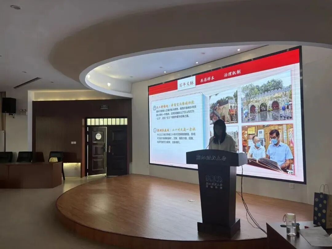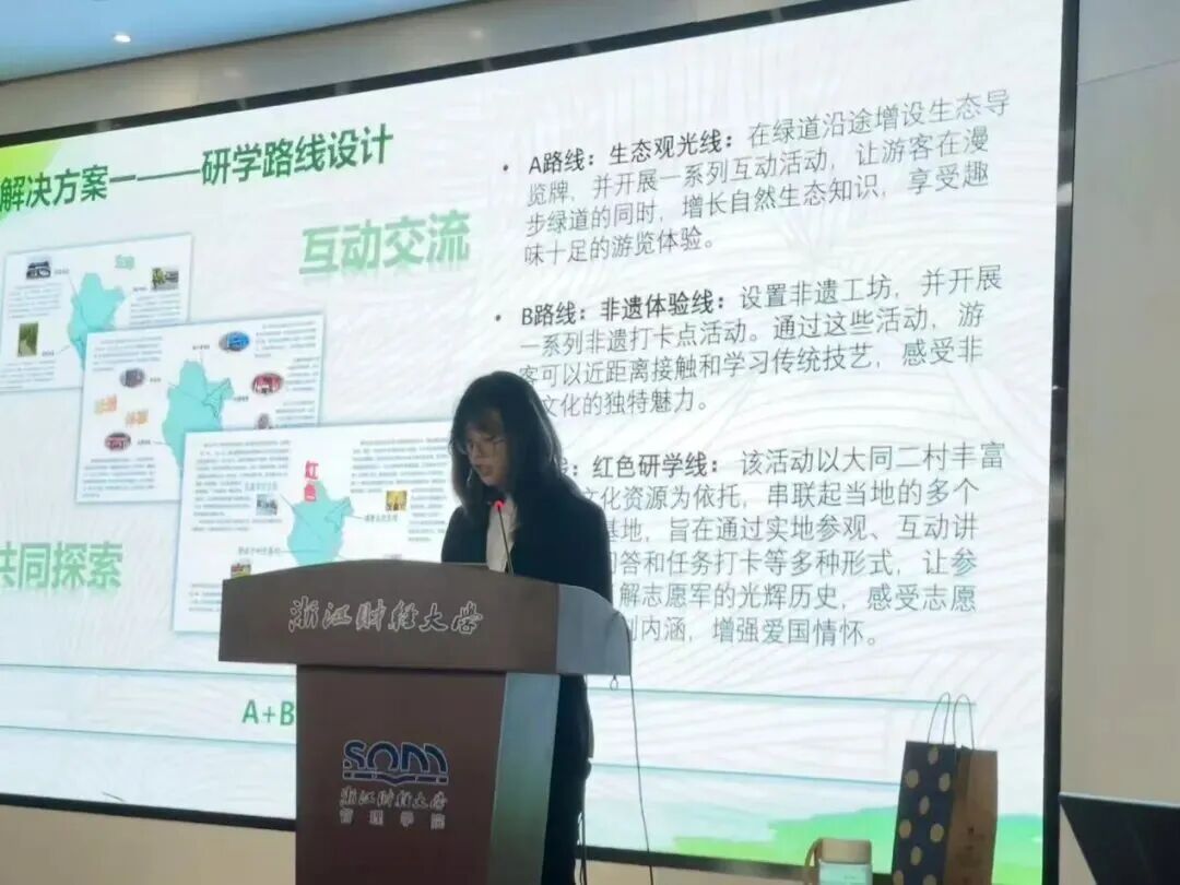 首先是“萧山遗韵,匠艺流芳”实践服务团展开答辩,该团队聚焦萧山区楼塔镇大同二村,深入调研后精准剖析当地发展痛点,并据此制定了一系列具有针对性的特色解决方案;紧接着,赴衢州“江山·西砚非遗活态传承”实践服务团奔赴衢州,深入调研西砚非遗项目,针对其保护传承问题,提出多个切实可行的方案;赴安吉“千万筑梦,绿动安吉”实践服务团经过多年的访问与考察,实行“青耕高庄行”CROP-I驱动模式,整合三大资源,围绕五个维度,助力乡村未来发展;“赴莲都“青叶绿海,翼起共富”实践服务团就竹林产业展开介绍,借助民盟平台累计卖出竹醋液6万瓶,切实带动乡村经济发展。