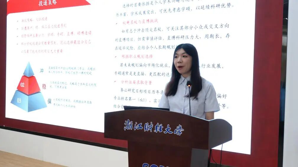 随着越来越多的同学开始关注保研政策和个人规划,保研至西南财经大学的薛瑾学姐分享了自己的学习经验。学姐以自身保研经历为切入口,详细解读各个学校的保研政策,比如GPA(平均学分绩点)要求、综合测评的加分项(科研、竞赛、论文、专利等),同时也会用自己的例子说明“刷高”绩点和获得竞赛关键性加分的方法。另外,薛瑾学姐还提倡根据自身实力和兴趣,通过学校官网、学术论坛、学长学姐、网络等渠道,进行“冲刺-稳妥-保底”的院校定位,确定心仪学术方向,并提高自身综合能力。这不仅仅是一场交流分享活动,更像是一次精神的传承和经验的交接。