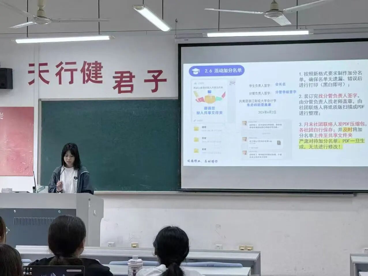 此外,社团联络人胡莎婕就活动加分名单、二三课堂分等其他事项加以补充说明,进一步明确了社团工作的规范。