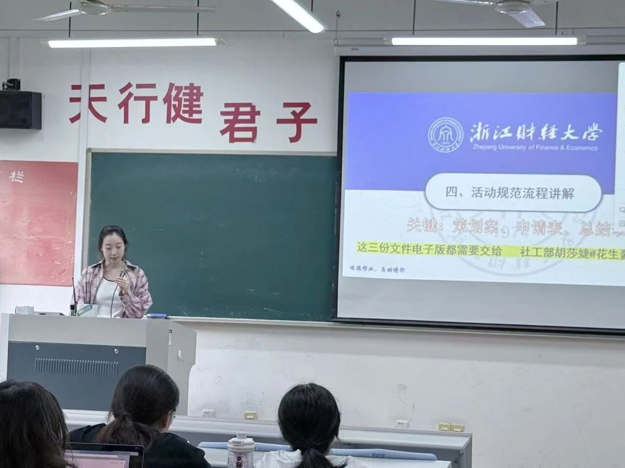 随后,社工部成员金楠同学结合上一学年的素拓工作经验,为大家介绍了新一轮素拓活动的具体流程与相关安排,确保各社团能够充分了解并熟悉工作,为活动的顺利开展做好充足准备。