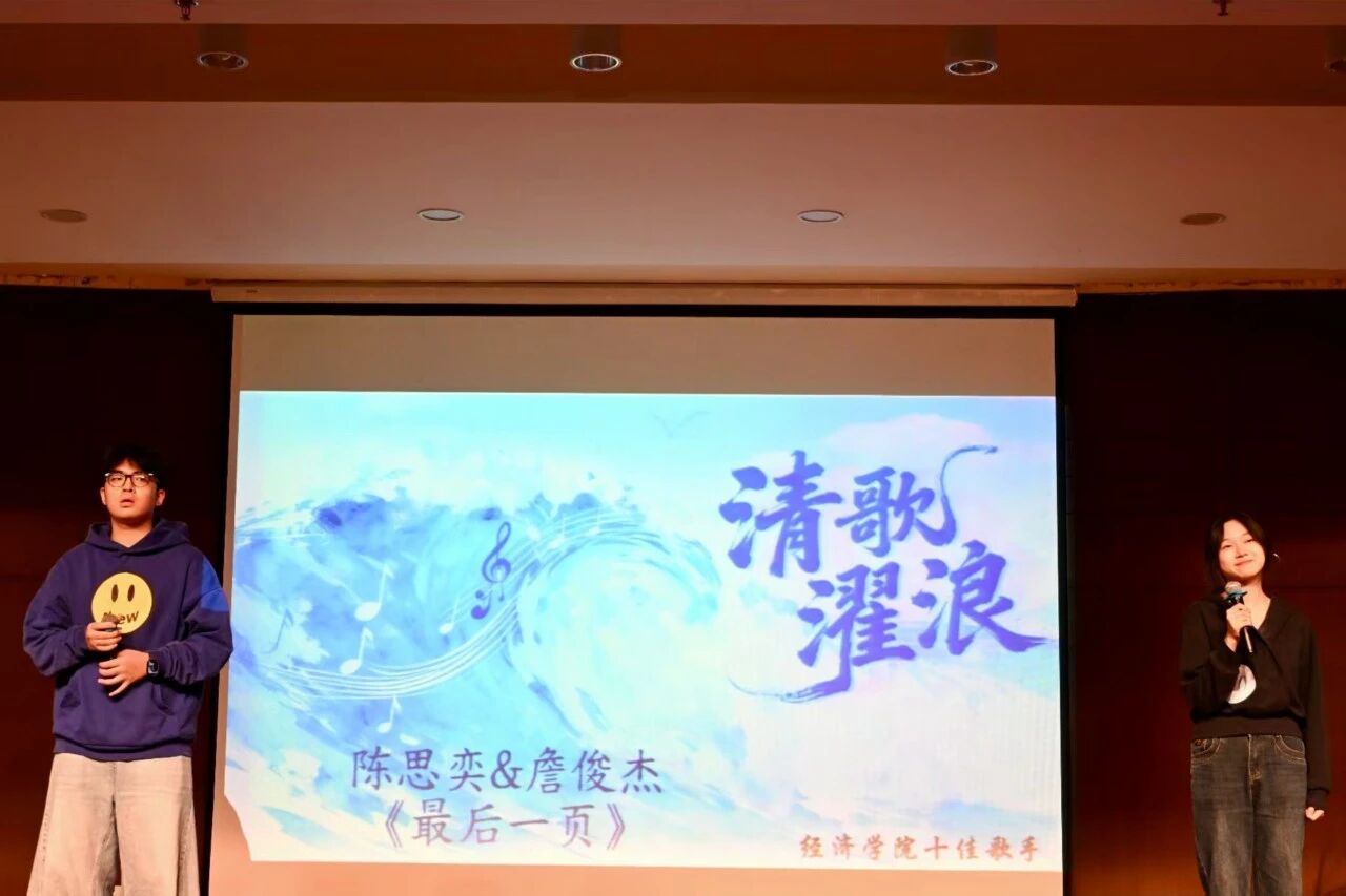 幕起,声落,浪花渐起。伴随着比赛结果的公布,2025年经济学院“清歌濯浪”十佳歌手圆满落幕。激昂的歌声萦绕耳畔,充盈全场,如雪季般澄明透亮,又似飞舞的初生精灵般婉转迷人。浙财之声伴着快乐与憧憬消散,浙财学子怀着希望与无畏勇气一往无前······