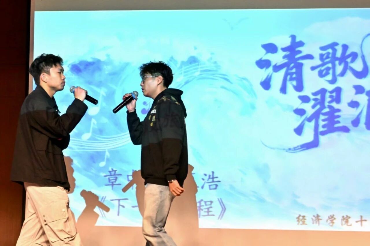 2025年10月25日,我院“清歌濯浪”十佳歌手决赛于学术一报精彩开唱。我院团委书记俞一献、辅导员李皓、陈杭钦出席本次比赛。此外大赛还邀请财政税务学院第八届十佳歌手、校艺术团韵落钱塘合唱团团长钱威,2022年浙江财经大学校十佳歌手冠军、2023年浙江省大学生艺术节十佳歌手狄晨新,2024级法学院十佳歌手冠军、校艺术团韵落钱塘合唱团男高首席田佳俊,2024级经济学院十佳歌手冠军、校艺术团韵落钱塘合唱团男高首席邱天作为本次比赛评委。同时到场的还有特邀表演嘉宾以及各校院文艺部负责人。