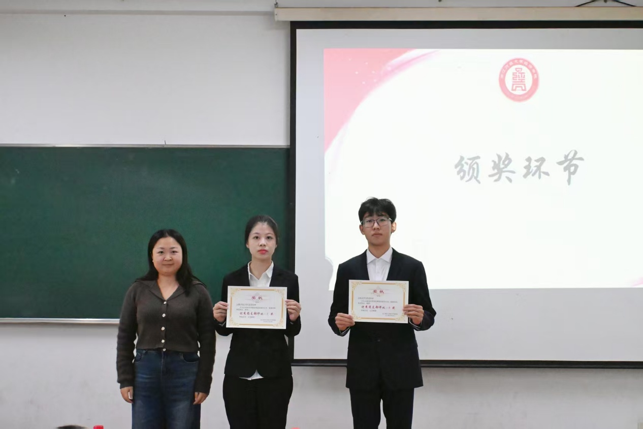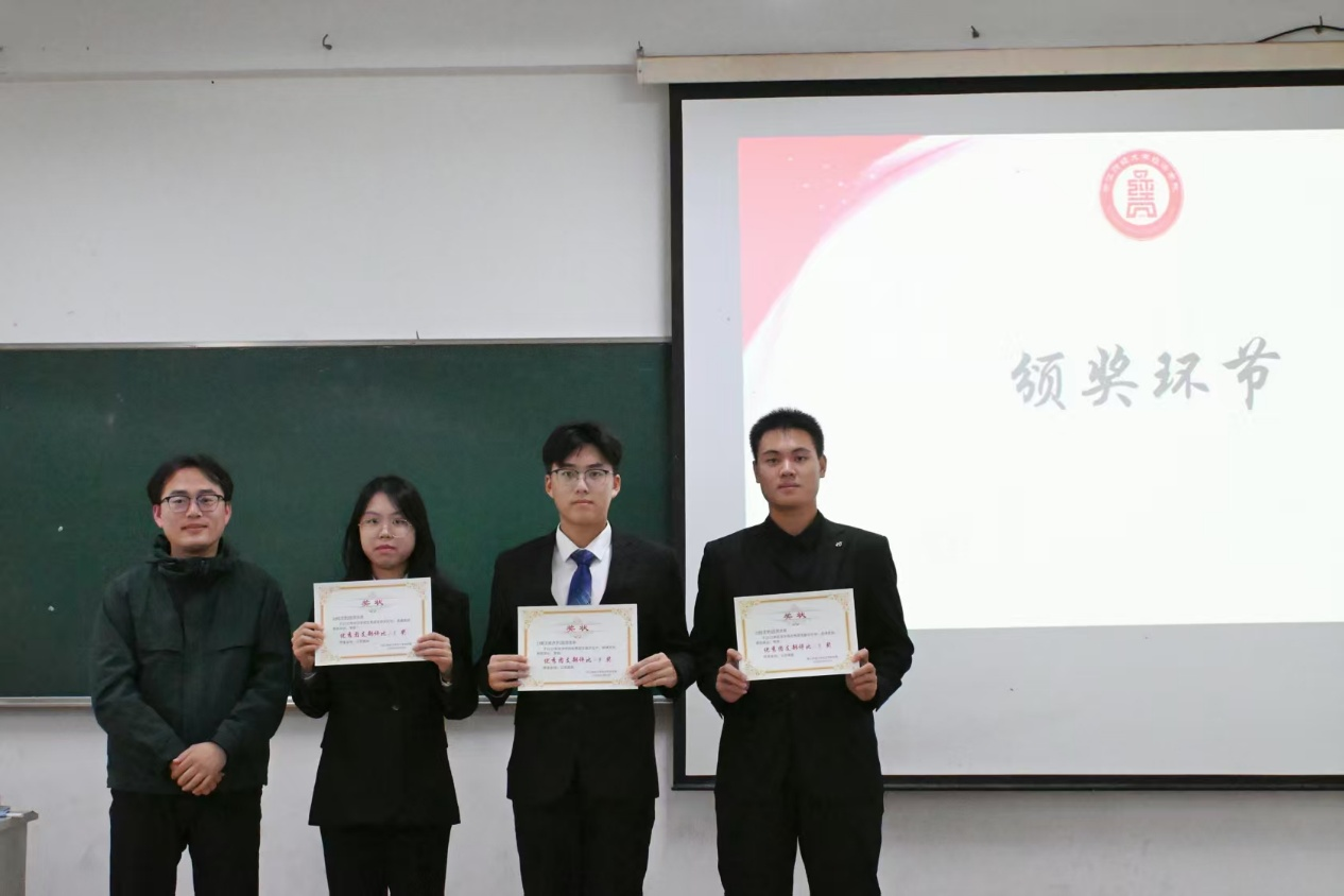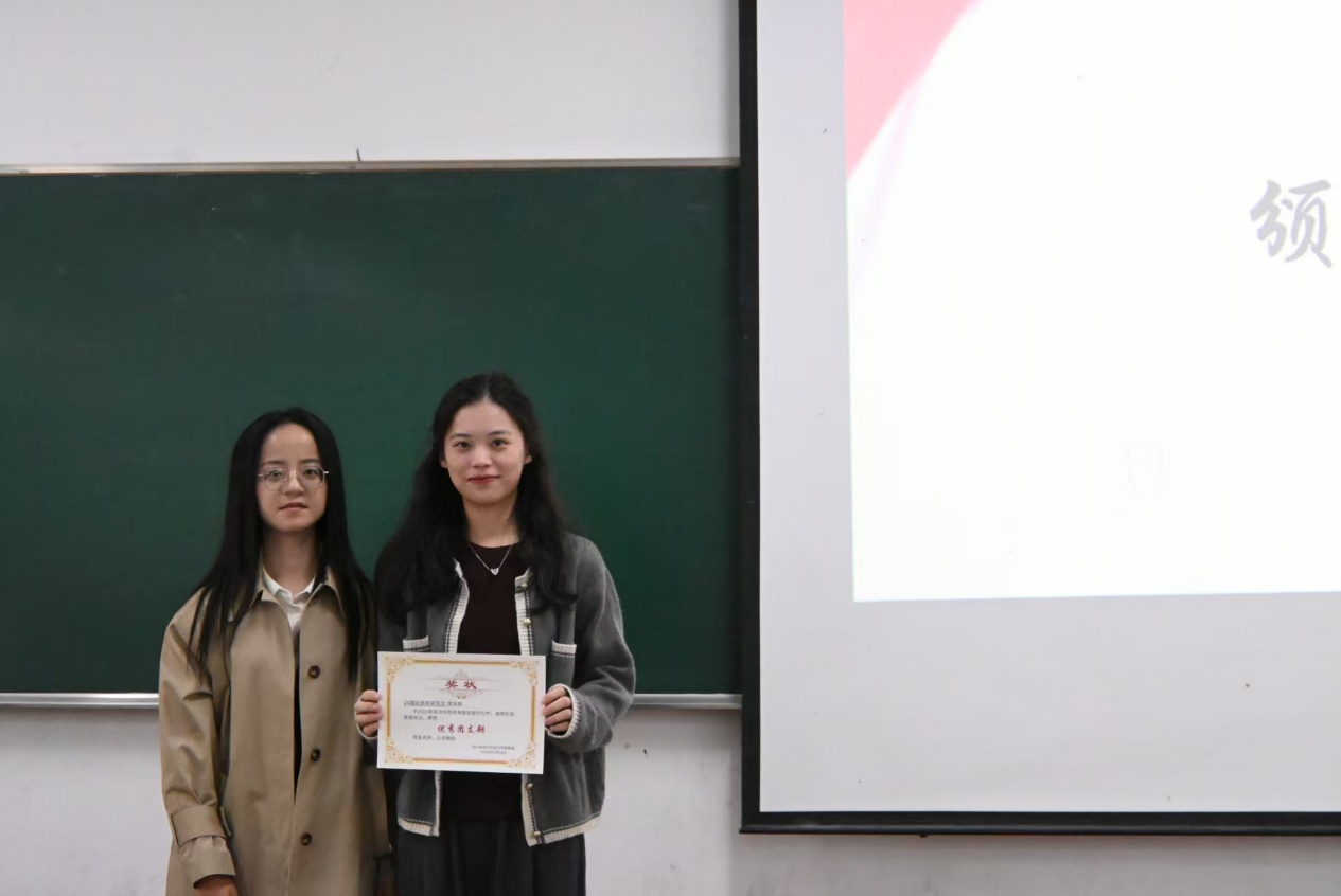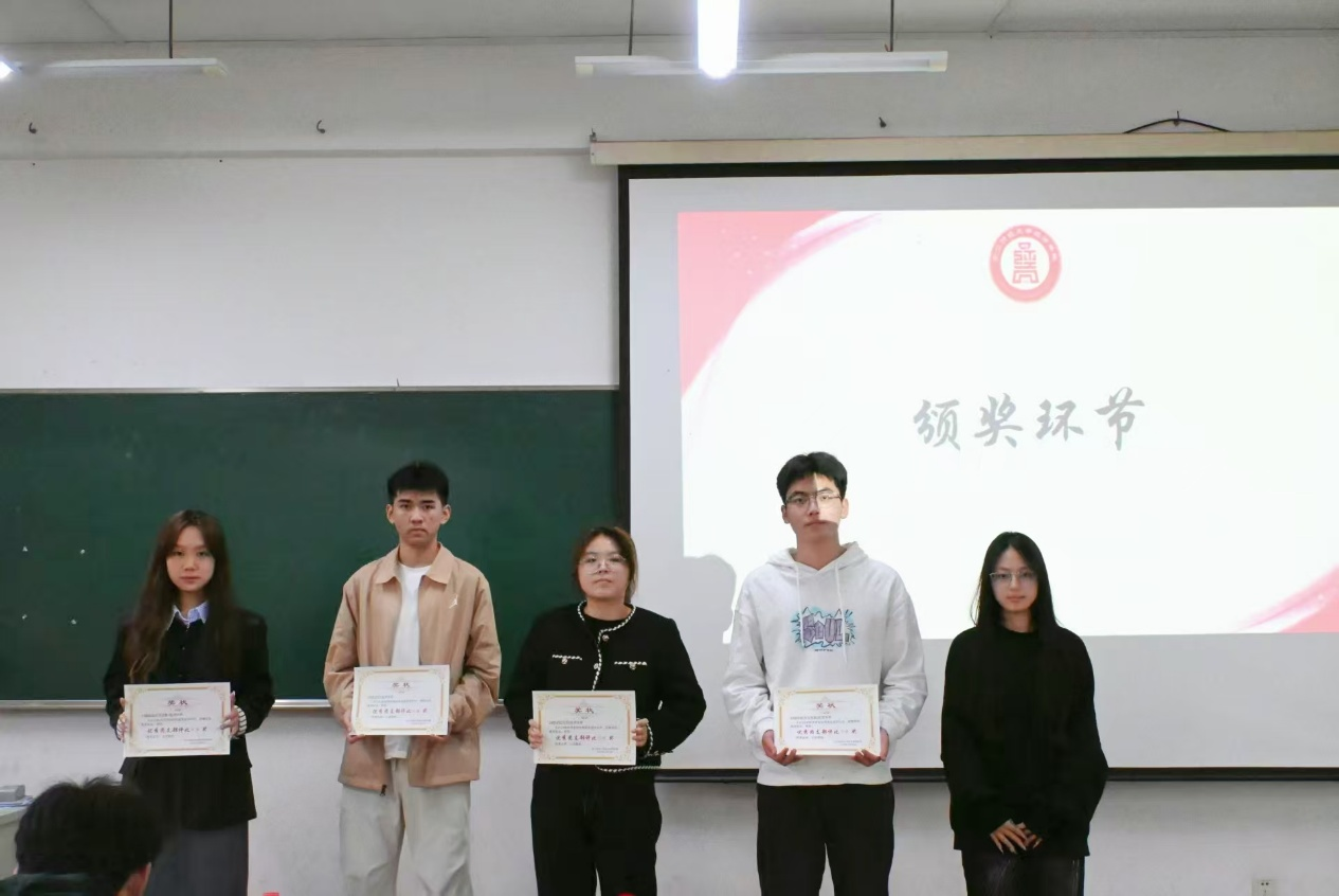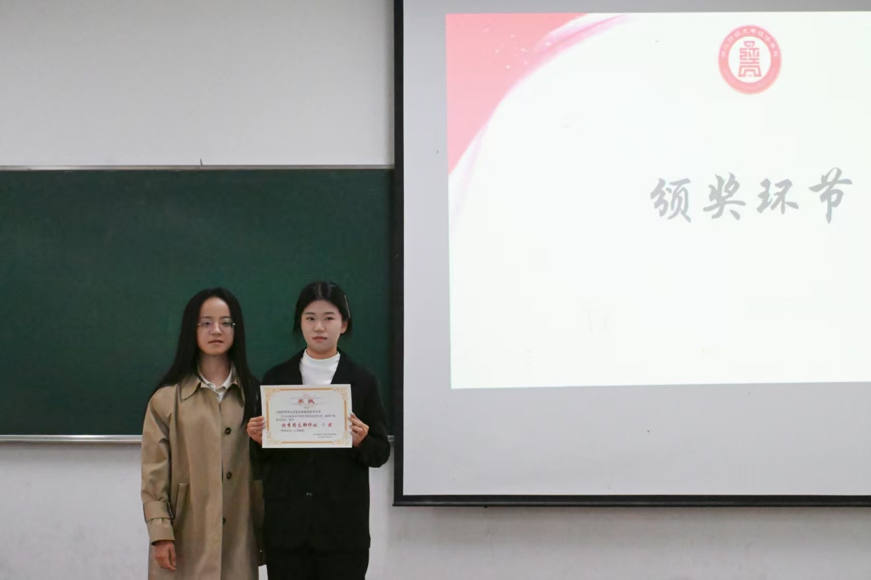 经主持人宣布评比结果后,评委老师上台为获奖的各团支部颁奖并合影留念。