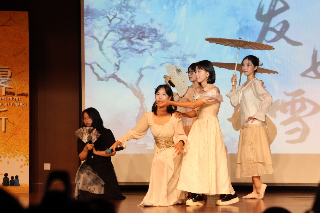 最后,院艺术团声乐队以《行走的鱼》清澈歌声收尾。演唱者用真挚情感诠释“逆流而上、执着追梦”的内涵,旋律中的勇气与温暖为篇章主题写下生动注脚,激励金融学子以无畏姿态奔赴新程。