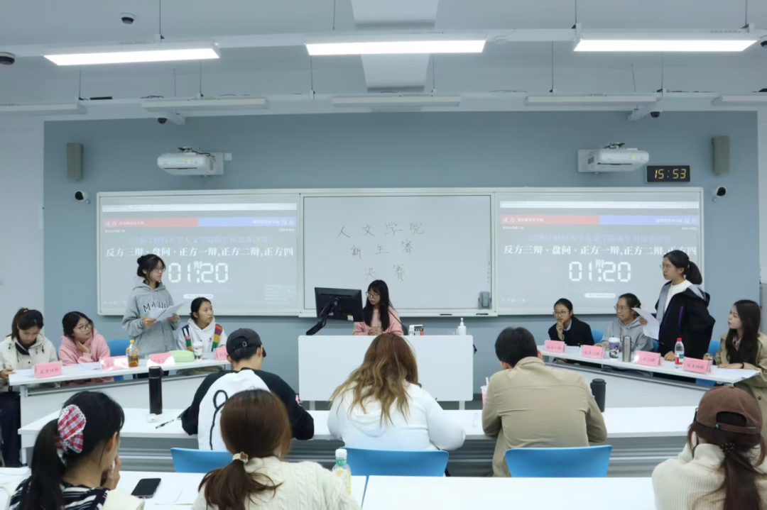历经多轮积分赛的激烈比拼,11月4日下午,人文与传播学院2025级新生辩论赛决赛在A310教室顺利举行。“海底小纵队”和“密涅瓦夜猫子队”从众多参赛队伍中脱颖而出,在赛场上展开对决,为现场观众呈现了一场精彩绝伦的思辨盛宴。