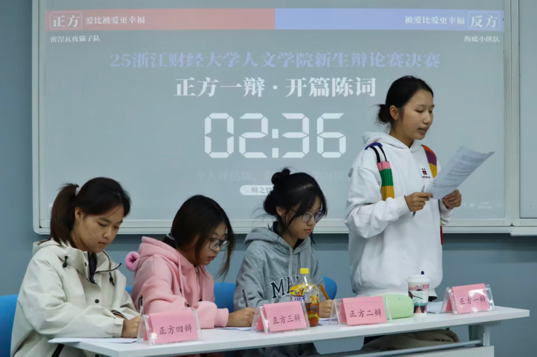本次决赛辩题为“爱比被爱更幸福/被爱比爱更幸福”,直击情感价值的核心探讨。正方“密涅瓦夜猫子队”与反方“海底小纵队”围绕这一辩题,从情感体验、社会价值、人生意义等维度展开深度交锋。