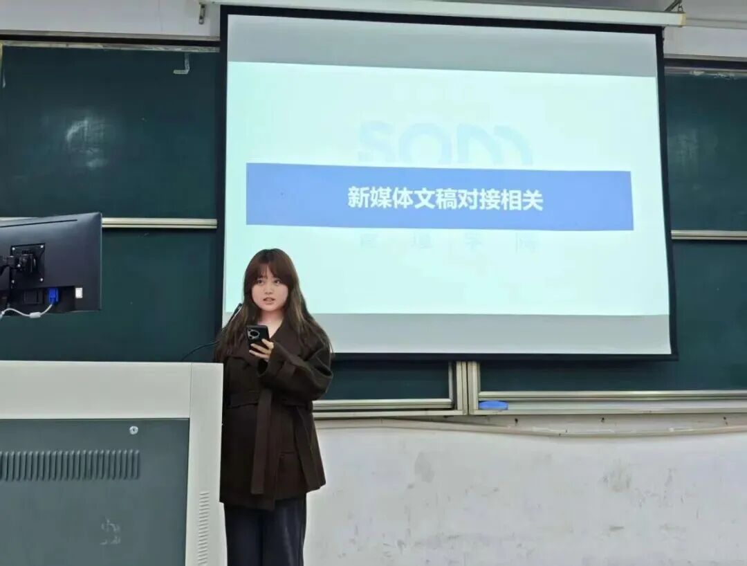 上述环节结束后,新媒体部门负责人与志愿工作部负责人依次上台分享:前者聚焦新媒体文稿交接相关事项,明确交接标准、流程与注意要点,保障宣传工作衔接顺畅;后者则围绕志愿工作展开讲解,涵盖志愿活动组织、参与要求及服务规范等内容。