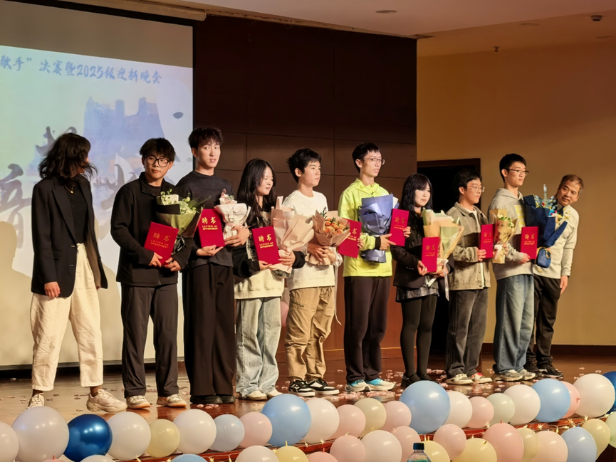 11月9日下午18:00,信息技术与人工智能学院于学术一报举办“韶音掠光”十佳歌手决赛暨2025级迎新晚会。学院党委副书记吴轶韵,院长助理、计算机系主任陈明晶,2025级计算机类1班班主任杨泽,2025级计算机类3班班主任陈勇,2025级计算机类4班班主任吴叶葵及全体辅导员与2025级新生参与活动。
