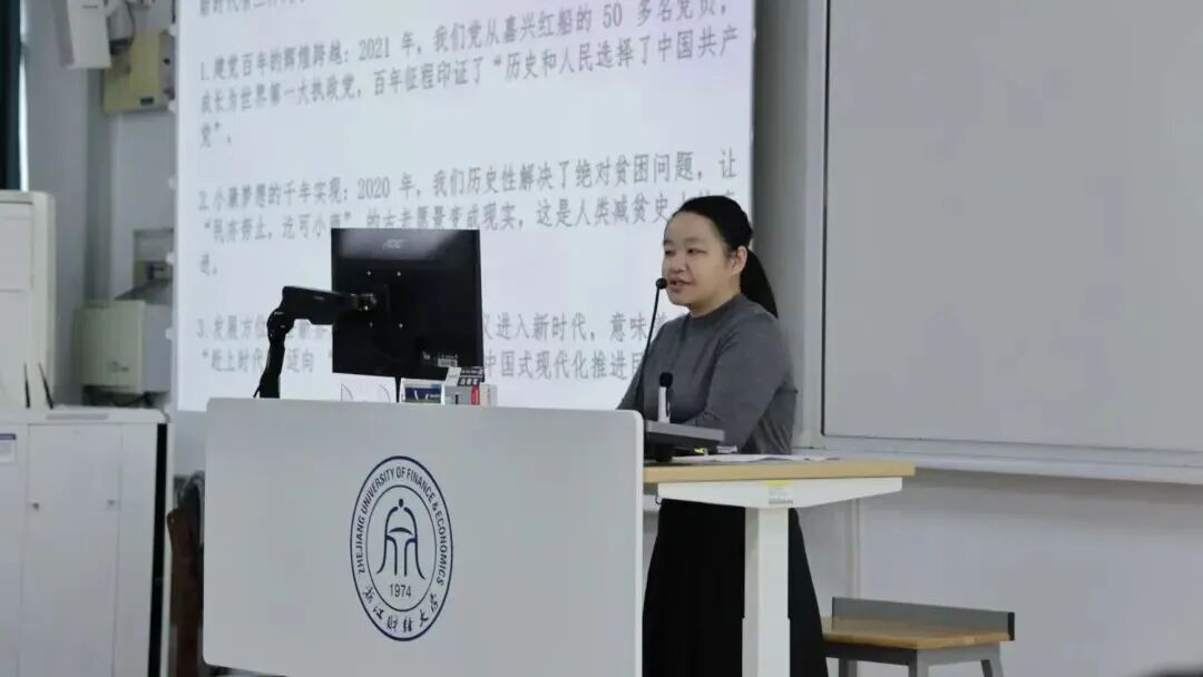 邓斯怡老师以“拥抱新时代,担当新使命”为主题,深刻剖析了时代所处历史方位中的机遇与挑战。通过一系列感人至深的故事,从革命先辈的忘我奉献,到新时代青年在抗疫中的挺身而出;从“两山”理念发源地余村的美丽蝶变,到棠棣村以兰花产业带动增收,生动阐述了新时代共产党员应有的责任与担当,引导大家深入思考如何将个人价值的实现,融入到为国家与人民服务的壮阔事业中去。