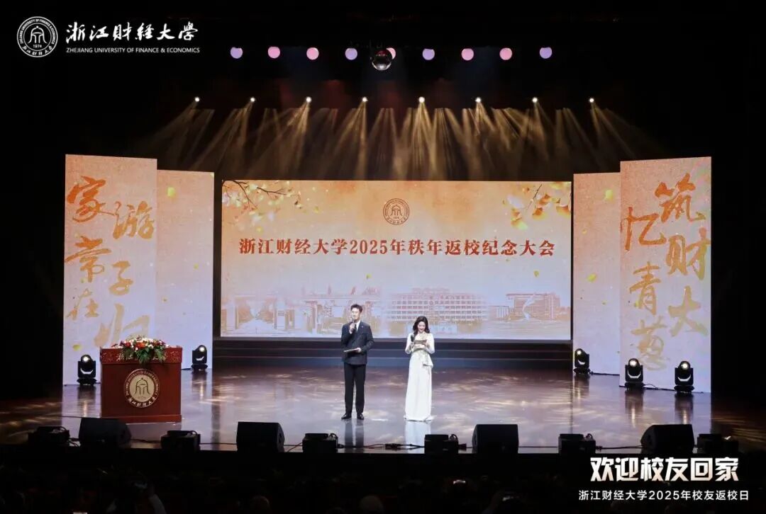 9:30-12:00,2025年秩年返校纪念大会在普华大剧院举行。校友们与师生代表们齐聚一堂,共同回顾浙财的发展历程。会上,魏江校长代表学校对返校校友表示热烈欢迎和亲切问候,并回望了浙财51年弦歌不辍的发展历程,细数学科建设、招生就业等亮眼成果,感谢校友的无私反哺。同时,魏江校长还表示学校将与校友共建三大共同体,为浙财织就一幅更美蓝图。此外,演讲、诗朗诵等系列活动交织着深厚的师友情谊与绵长的校韵荣光,尽显母校的活力与温情。