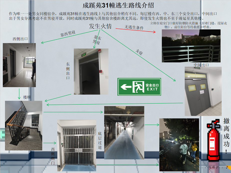 全国消防日是每年的11月9日。为唤醒同学们对消防设施的关注,让“应隐患显于明火,防范胜于救灾”的理念深入人心,文华创新学院举办了119火眼金睛·平安校园摄影活动,收到了同学们的踊跃投稿。参与者们用镜头记录消防设施,逃生通道,用多种形式为自己的生命安全又增添了一重保障。
