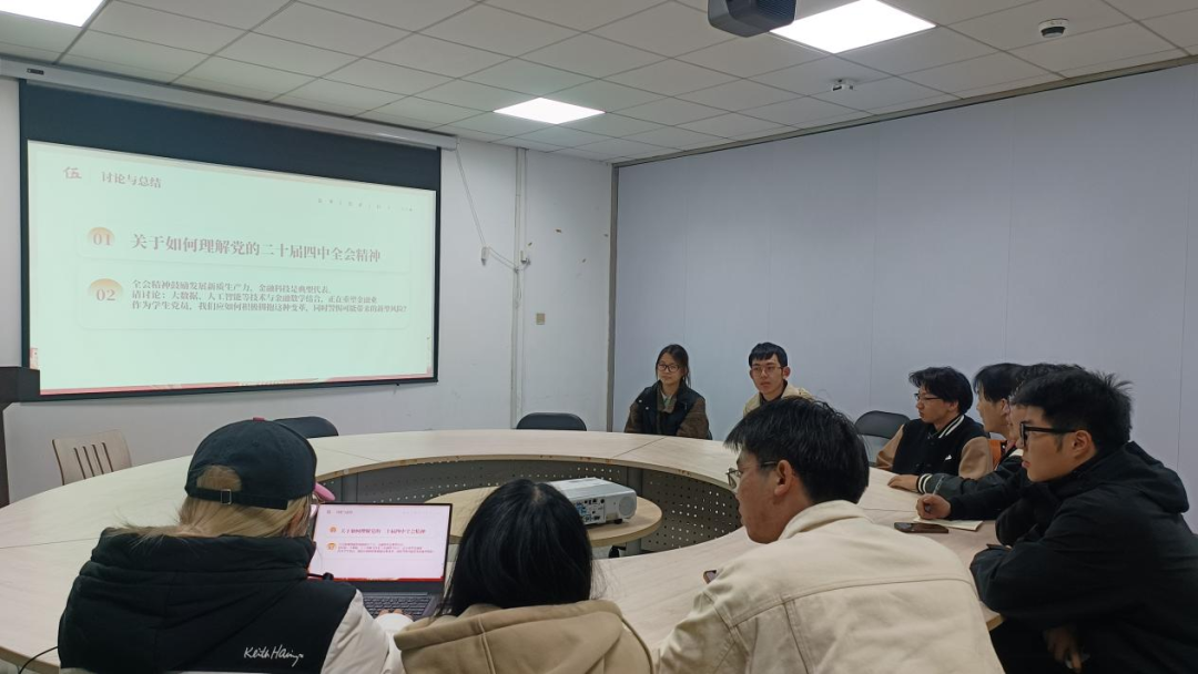 学习环节结束后,现场开展了热烈的互动讨论。支部成员围绕“如何理解党的二十届四中全会精神的实践意义”“新质生产力与专业发展的结合点” 等问题各抒己见。全会精神为青年学子指明了学习和研究的方向。