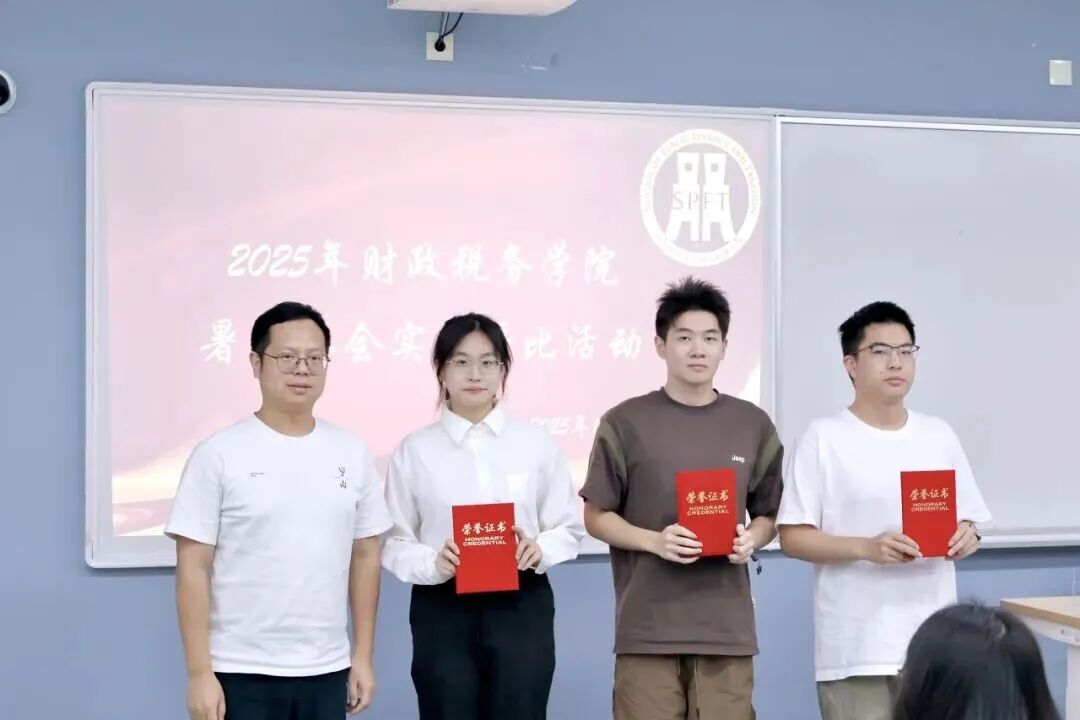 【新闻部】(俞烨笑/文,林依娜/摄)10月16日下午2:00,我院于A208举办2025年暑期社会实践评比活动,财政税务学院教师罗会涛老师,学办主任李永涛老师,团委书记张博涵老师,辅导员严灿老师、王泽昌老师出席本次活动并担任评委。