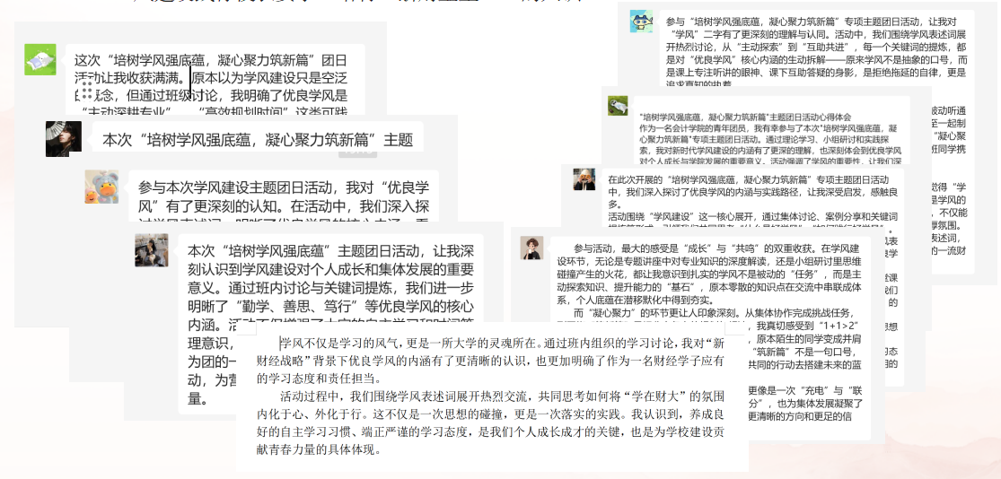 同学们从自身做起,响应学校深入实施“新财经战略”、建设特色鲜明一流财经大学的号召,共同建设优良学风,打造高质量学校生活。