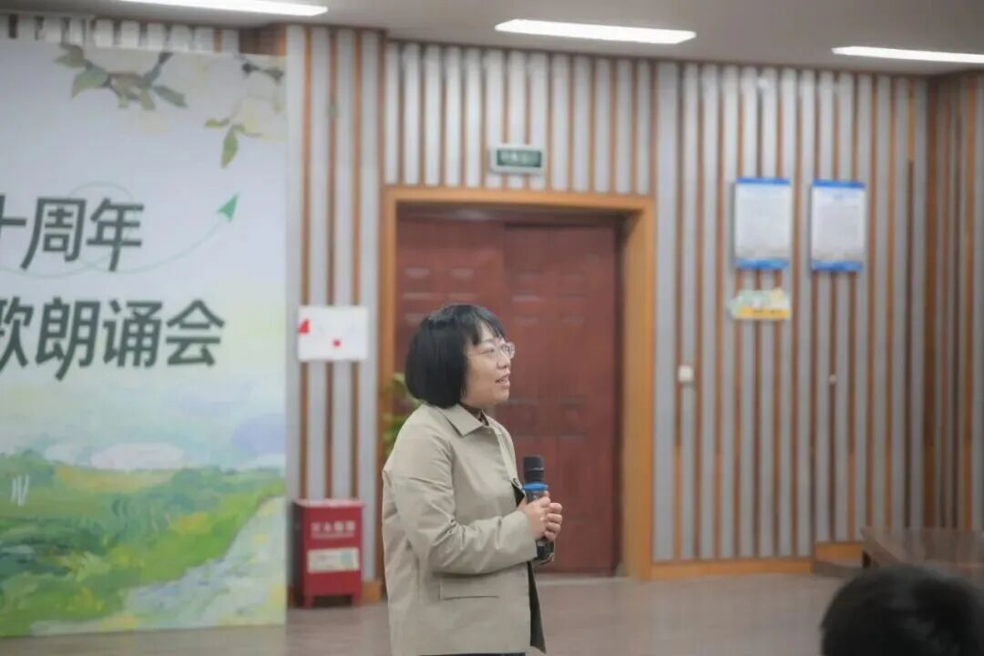 作为《思韵》的指导老师,姚晓萍老师同样深情回顾了与《思韵》相伴成长的岁月。她称本次朗诵会在思韵文学编辑部文化建设中具有开创性意义,“堪称前无古人”,极具价值。姚老师进一步表达期许,希望此类诗歌朗诵会能够常态化举办,成为师生之间、诗友之间一个“以诗会友,以心相交”的宝贵平台。