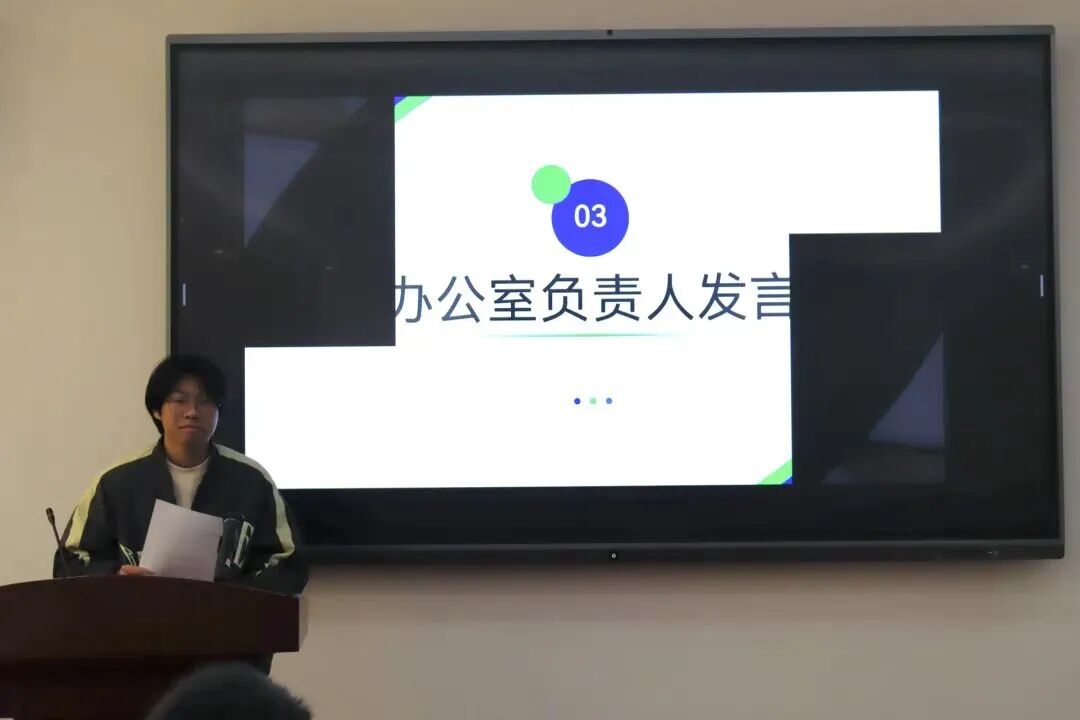 随后,执行主席郑迅结合他在分管工作中的实际情况,对各部⻔负责人及成员本学期的辛勤付出与认真负责给予了高度评价与充分肯定。他表示,本学期全体成员都以认真的态度、饱满的热情投身学生会工作,对大家的努力与奉献致以诚挚感谢,并勉励全体成员继续秉持这份责任与热忱,希望大家在后续工作中保持精益求精的态度,继续为学院发展注入青春活力,再创佳绩。