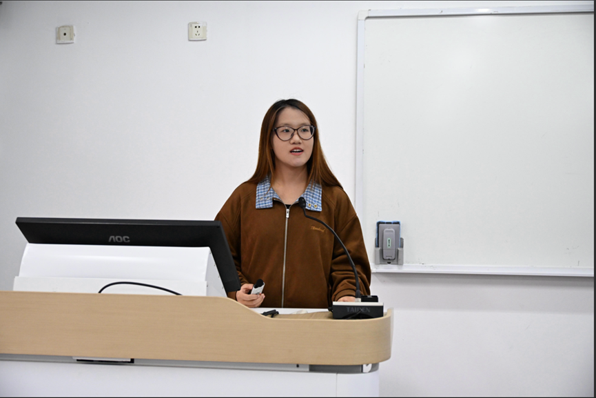 活动伊始,丁玉洁同学率先登场,聚焦数学建模类赛事展开分享。她首先为大家梳理了各类认可度高、含金量足的权威数学建模赛事,让同学们对赛事选择有了清晰的认知。随后,她结合自身经验,从“如何构建数学模型”“团队成员如何科学分工”“备赛阶段的核心任务”“赛事选题的技巧与避坑点”“论文撰写的内容分布与逻辑架构”等多个关键维度进行了细致拆解,同时强调了比赛过程中的注意事项,为有意向参与数模竞赛的同学搭建了完整的备赛框架。