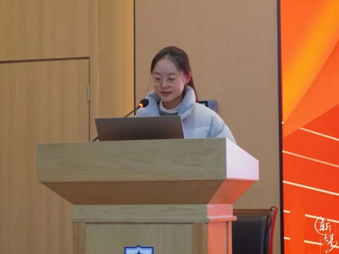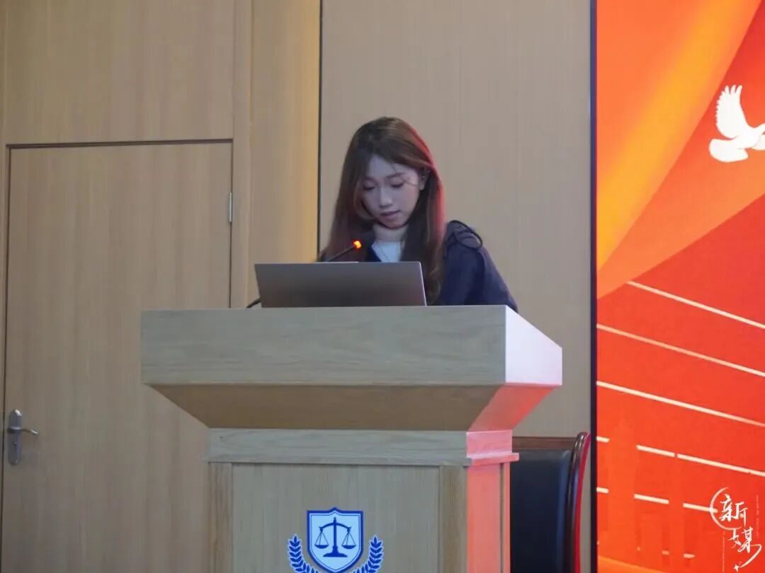 实践部负责人邱天结合法学专业分享感悟:回顾 “十四五” 重大成就,强调需增强 “四个意识”、坚定 “四个自信”、做到 “两个维护”。