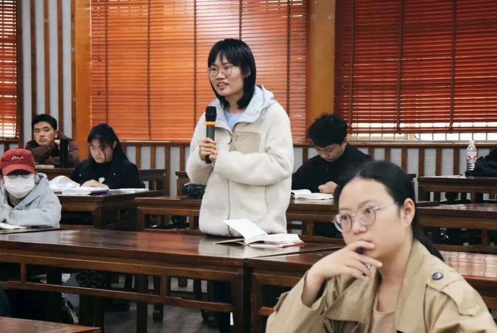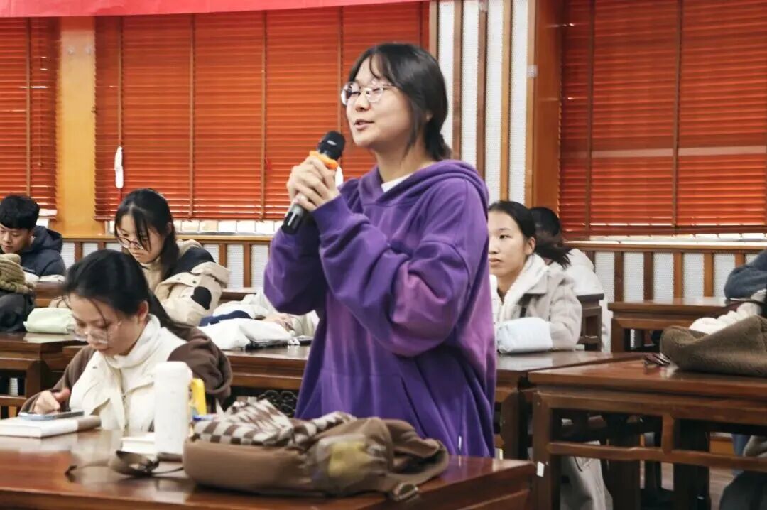 12月2日下午,浙江财经大学第四十二期“思齐”悦读会在人文传播学院问津书院顺利举行。本次活动以“探寻非遗与文学之美”为主题,特邀中国作家协会会员、中国散文学会理事、浙江省作家协会散文委员会主任、浙江省散文学会常务副会长苏沧桑担任主讲嘉宾,人文与传播学院党委副书记袁慧兰主持本次活动,二十余名师生参与此次读书会。