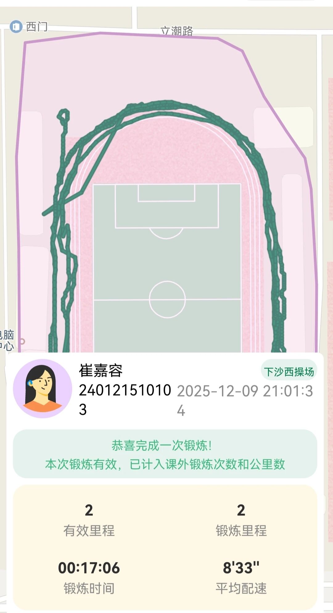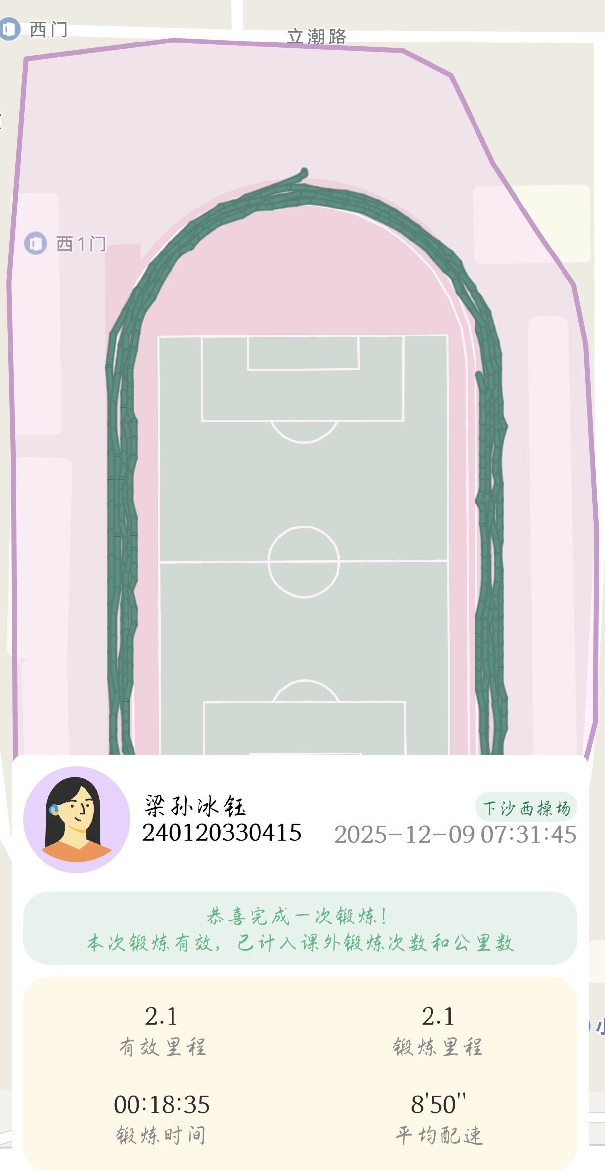 早晨八点钟,摄氏三度的西操场,起跑时呼吸凝成白雾,脚步僵硬。慢慢地,身体在重复的节奏中苏醒,思绪在冷空气中沉淀。冬日晨跑给予我的,从来不是数字,而是一个完整的、只属于自己的清晨。当世界还在沉睡,奔跑以最原始的方式,在空旷的操场上为我划出一片清醒的、自由的地带。当停下晨跑的脚步,身体自然地暖和起来—这是冬日晨跑最好的馈赠。