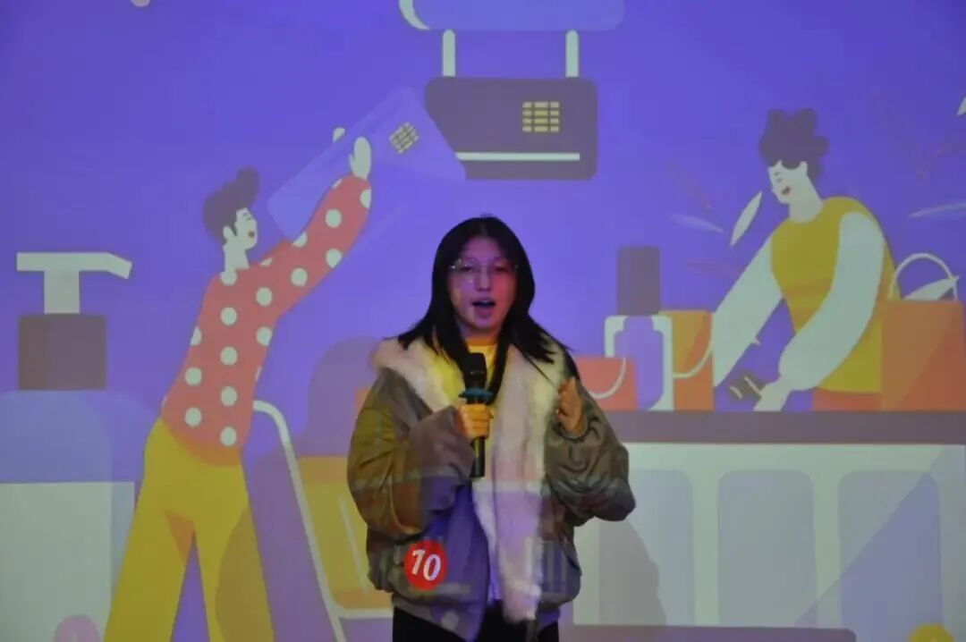 在脱口秀环节,选手们聚焦 “人工智能与金融——青年人才的机遇与挑战”“Emotional Consumption” 等议题,结合个人经历展开论述。他们台风稳健、表达流利,以清晰的逻辑和富有感染力的语音语调,展现出我院学子对社会热点的深刻洞察,精彩表现赢得了现场阵阵掌声。