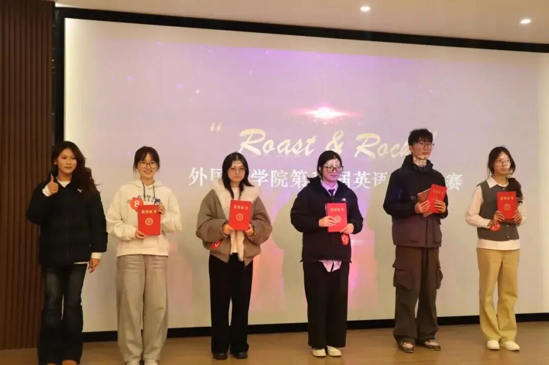 为激发学生英语学习热情,拓宽国际视野,提升用外语讲好中国故事的综合能力,近日,外国语学院第十九届“Roast&Rock”英语语音大赛在文化中心309举行。学院鹿子鸣、伊惠娟、张桃红三位老师应邀担任评委,为选手们提供专业点评与指导。
