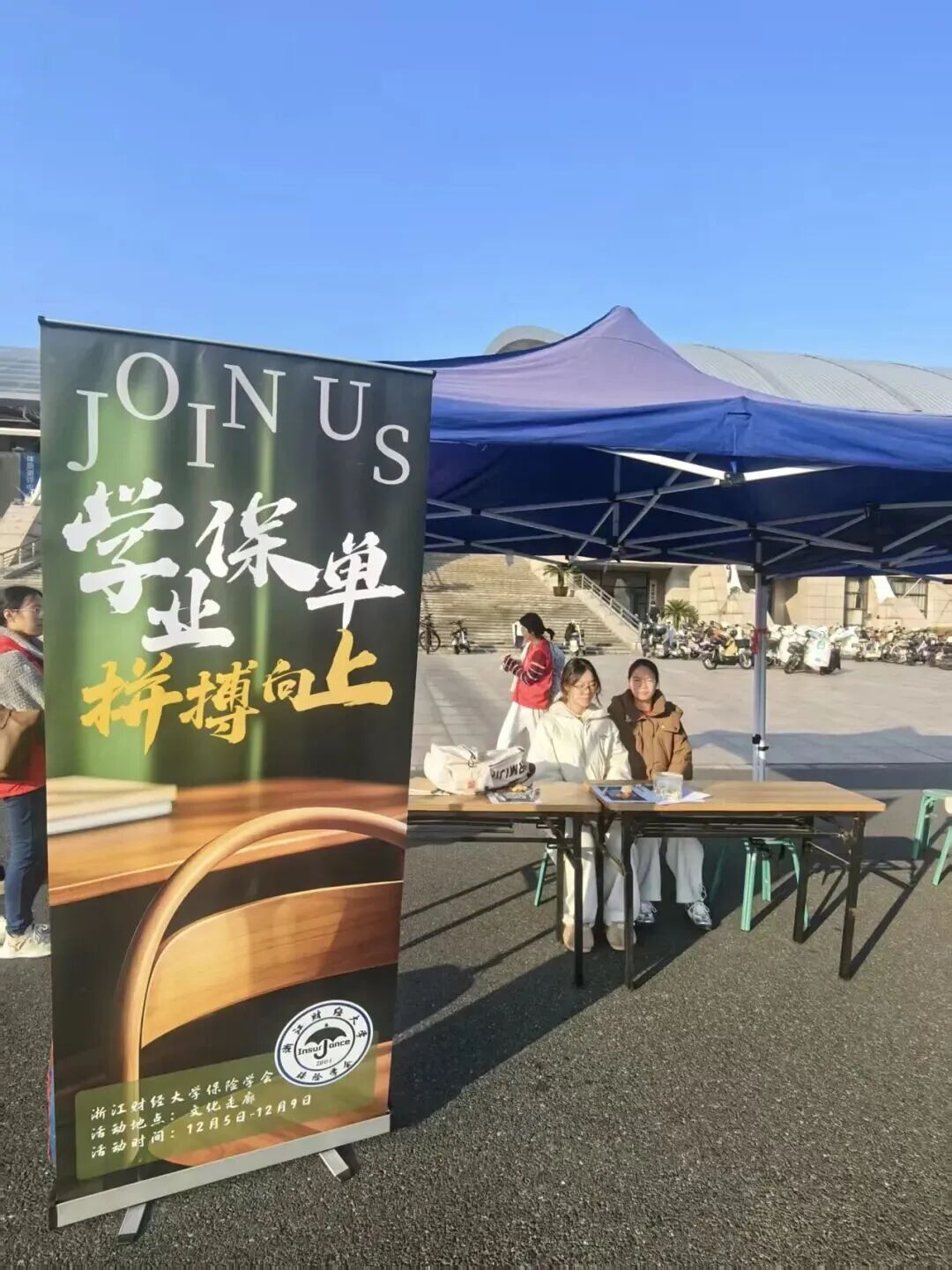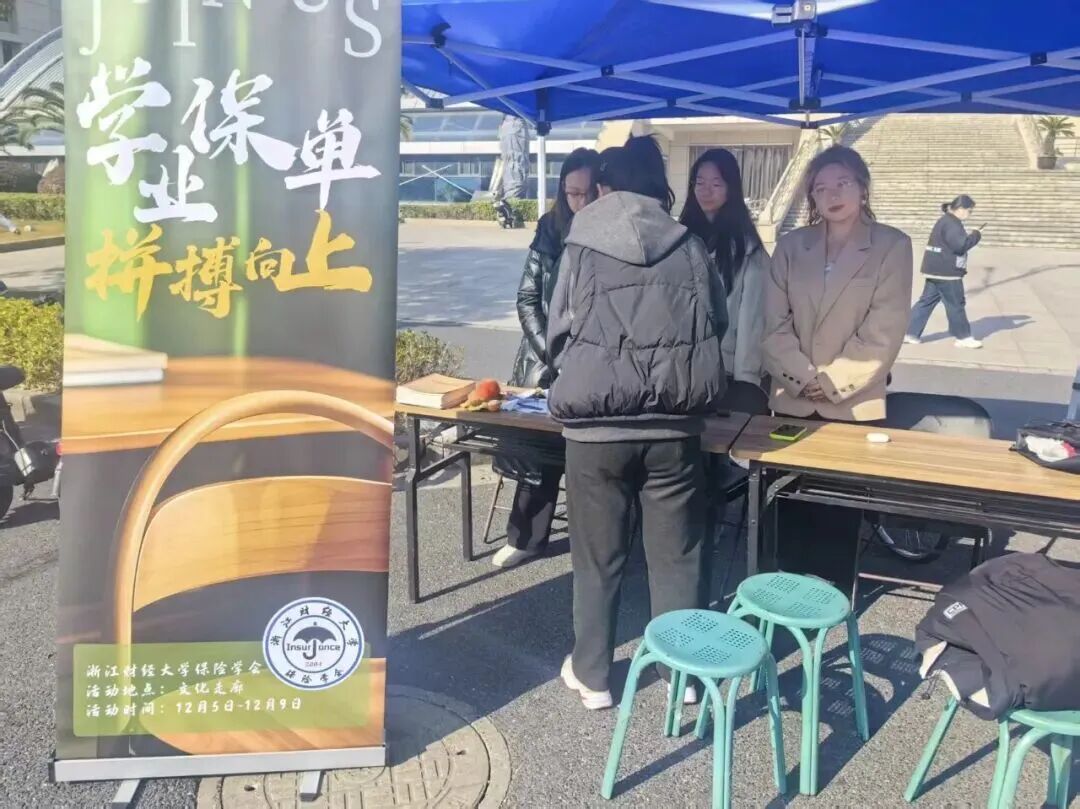 随着期末考试、英语四六级等考试的临近,同学们不约而同的感到焦虑紧张和压力陡增。为找回广大学子的学习热情并培养风险管理意识,2025年12月9日下午,浙江财经大学金融学院保险学会与学风建设部响应学院学风建设月的号召,在浙江财经大学文化长廊,面向浙江财经大学全体学生,给同学们带来了“单科满绩险”、”六级冲分险”、“单科挂科险”、“四级未过险”等学业保单。学子们可根据自身的情况,投保不同类型的保单,给自己的学业上一份“保险。