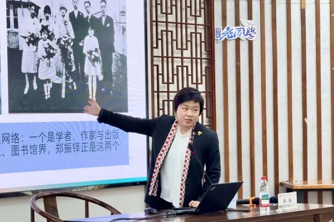 吴真教授随后聚焦本书的核心叙事,深度解读了主人公——五四运动重要参与者、文学家郑振铎在抗战时期的非凡事迹。在上海沦为“孤岛”的极端困境中,郑振铎毅然选择留守。他并非手握刀枪的战士,却以笔和书为阵地,展开了一场惊心动魄的“文化暗斗”。吴真教授详细讲述了郑振铎如何秘密组织“文献保存同志会”,在敌伪监视下,克服重重险阻,为国家抢购、保存大量濒危古籍善本。从鉴别版本、筹措资金,到将数千部珍本巧妙伪装、冒险转运出上海,这段被喻为“一个人的文化抗战”的历史,在吴真教授的讲述中得以生动再现,展现了一位书生在民族危亡之际的孤勇、智慧与深沉的家国担当。