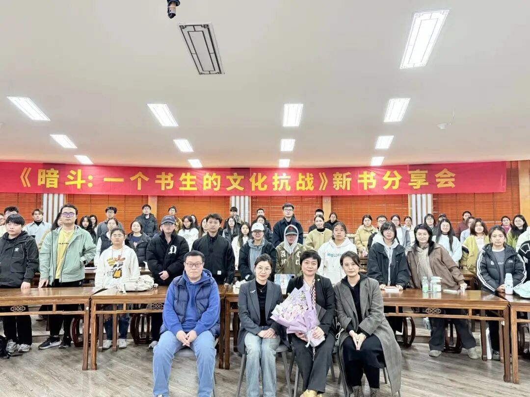 活动尾声,吴真教授为现场读者的藏书签名留念,并勉励大家通过阅读,更深入地思考抗战、文化与个体生命之间复杂而永恒的关系。笔墨为刃,文心作盾。本次分享会不仅引领师生们重回那个没有硝烟却同样惊心动魄的文化战场,更照亮了埋藏于故纸堆中的风骨与精神。读书人的坚守,在乱世中是守护文明的火种,在今日,依然是激励后辈砥砺前行的力量。
