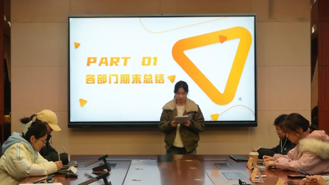 会上,各部门负责人作为代表,依次上台作工作汇报,详细阐述了本学期的工作开展情况。各学生组织立足自身职能,对本学期的整体工作进行复盘。与此同时,各组织始终秉持实事求是的原则,以客观审慎的态度,深刻剖析工作推进过程中存在的不足。针对这些亟待改进的问题,各部门结合实际工作情况,提出了切实可行的改进方案,明确了具体的操作措施,为后续推动各项工作朝着更加稳健方向发展奠定了基础。