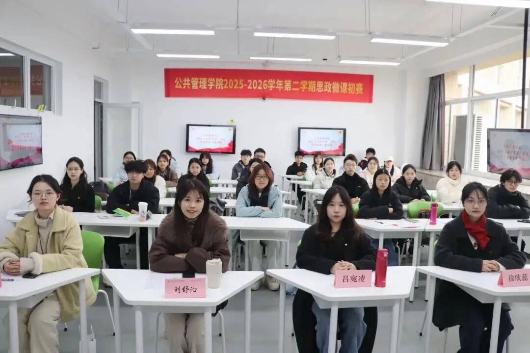 为全面贯彻党的二十大和二十届四中全会精神,深入贯彻落实习近平总书记在全国教育大会上的重要讲话精神和对学校思政课建设的重要指示精神,强化对高校团员和青年的思想政治引领,公共管理学院团委于3月3日在教学楼A213开展了2026年度思政微课大赛院级选拔。本次活动以“薪传浙财精神 奋进时代征程”为主题,分红色教育、发展成就、青春奉献三个微课赛道进行。公共管理学院团委书记刘舒沁老师、辅导员吴楷老师、团委副书记吕宛凌、徐欣蕊出席并担任比赛评委。