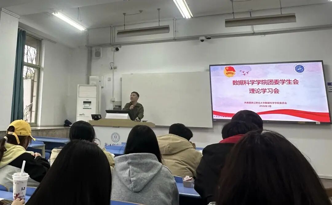 为深入学习贯彻全国两会精神,准确把握 “十五五” 规划的战略部署,并结合《浙江财经大学使命文化与战略纲领》,引导青年学生将个人成长融入国家发展大局,3月24日下午数据科学学院团委学生会于B310教室组织召开了以 “学习全国两会精神,践行浙财使命担当”为主题的期初工作会议暨理论学习会。学院团委书记温从乐、学院团委学生会全体负责人参加会议。