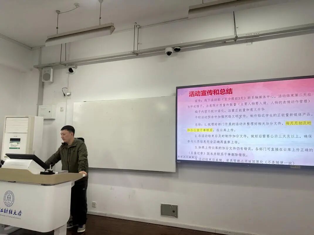 此外,会议还对活动宣传和总结提出了明确要求,强调线下活动需提前宣传,活动结束后及时形成稿子,并做好信息归档与管理,确保各项工作规范、高效地推进。此次会议的召开,不仅加深了学生骨干对国家政策和学校使命的理解,更明确了新学期的工作方向和责任担当。数据科学学院团委学生会将以此次会议为新起点,团结带领广大同学,在学习中成长,在实干中担当,共同开创学院学生工作的新局面。