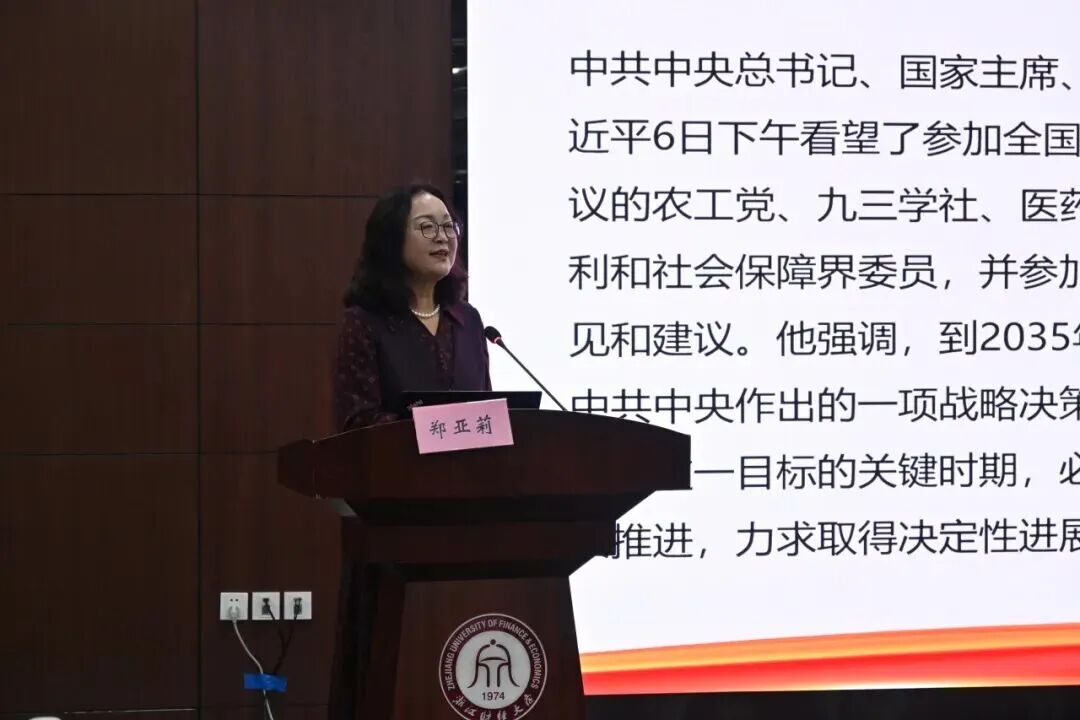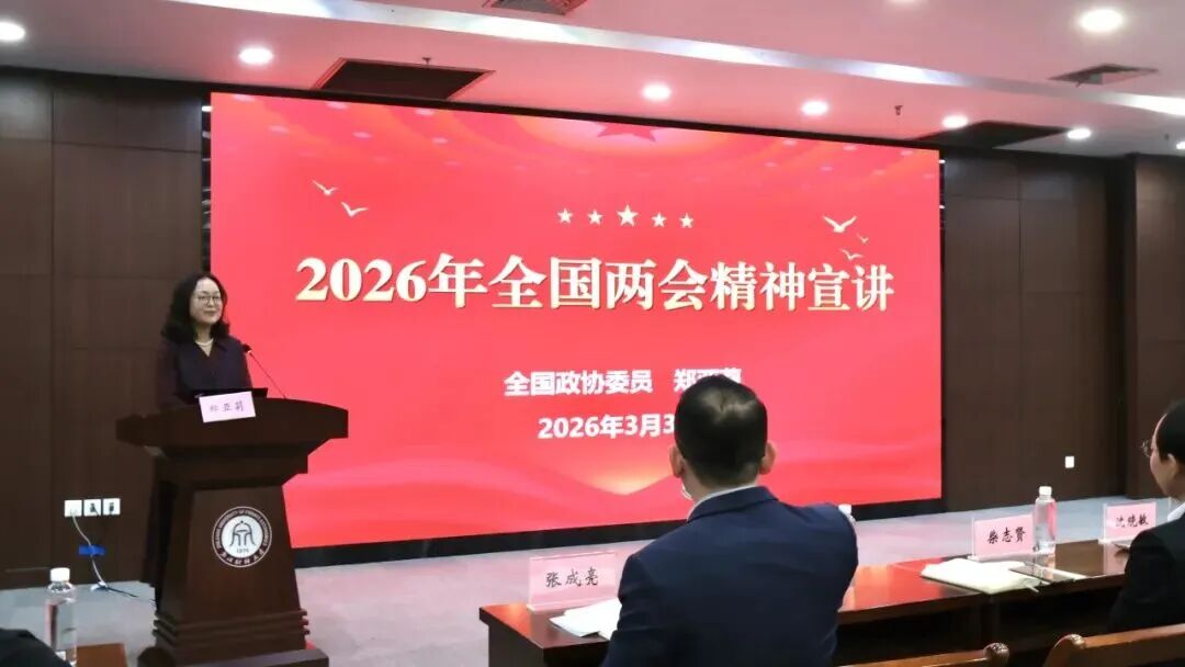 为深入学习贯彻 2026 年全国两会精神,切实把思想和行动统一到党中央决策部署上来,3 月 31 日,我校举行全国两会精神专题宣讲会,全国政协委员、数字贸易“铁三角”项目主任郑亚莉应邀作专题宣讲。我院师生代表参加了会议,共学两会精神、共担时代使命。