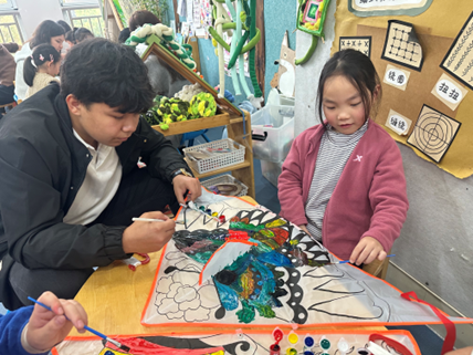 最受期待的纸鸢制作环节,成为本次活动的暖心亮点。大学生们手把手带着幼儿园小朋友们一起扎骨架,绘图案,一笔一画间,不仅有清明的春景、传统的纹样,更有各民族同心同行的美好愿景。维吾尔族、哈萨克族等少数民族学生用自己的巧手,教小朋友们绘制具有民族特色的风筝纹样,分享家乡的文化故事;小朋友们则用稚嫩的画笔,在风筝上写下对先烈的敬意、对民族团结的祝福。大小朋友围坐在一起,欢声笑语中,纸鸢渐渐成型,更将大中小思政一体化的理念、民族团结的深情,融入每一针一线、每一抹色彩。