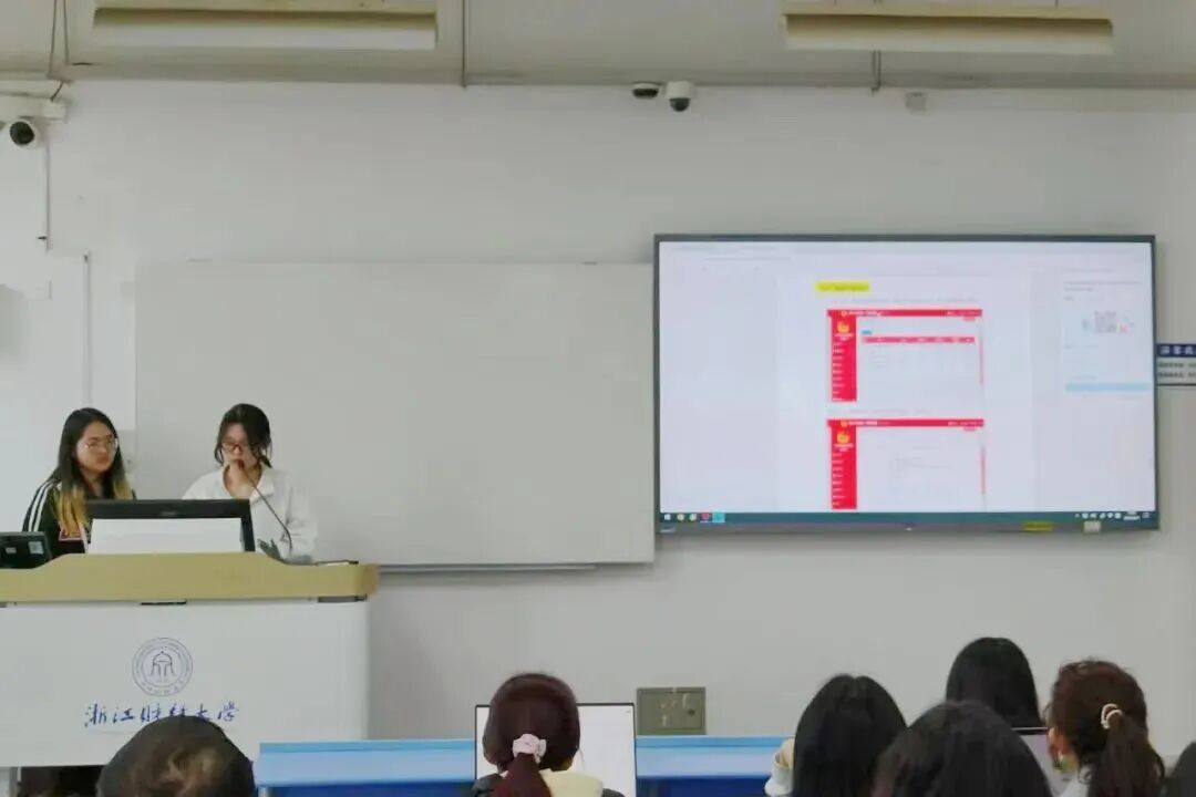 接下来,为了让各位团支书们更深入地理解和掌握团支书的工作,更好的提高工作效率,推动工作有序进行,法学院组织部负责人刘俞倩学姐和林佳琪学姐对《浙江财经大学法学院团支部工作手册》进行细致讲解。两位学姐通过演示、讲解、互动等方式对各位团支书进行培训,帮助团支书更好地理解和掌握团的基本知识和团组织管理的技巧。